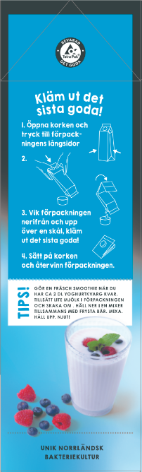 Vår Verum Krämig Yoghurtkvarg har en lite tjockare konsistens än till exempel en "vanlig" yoghurt, vilket gör att den inte riktigt är tänkt att hällas ut ur förpackningen. Den fungerar oftast bäst om man istället trycker ut innehållet. Ett tips är att trycka lätt på förpackningens fram- och baksida samtidigt – då brukar kvargen komma ut smidigare. På gaveln av förpackningen finns också en liten instruktion som visar hur man kan göra.